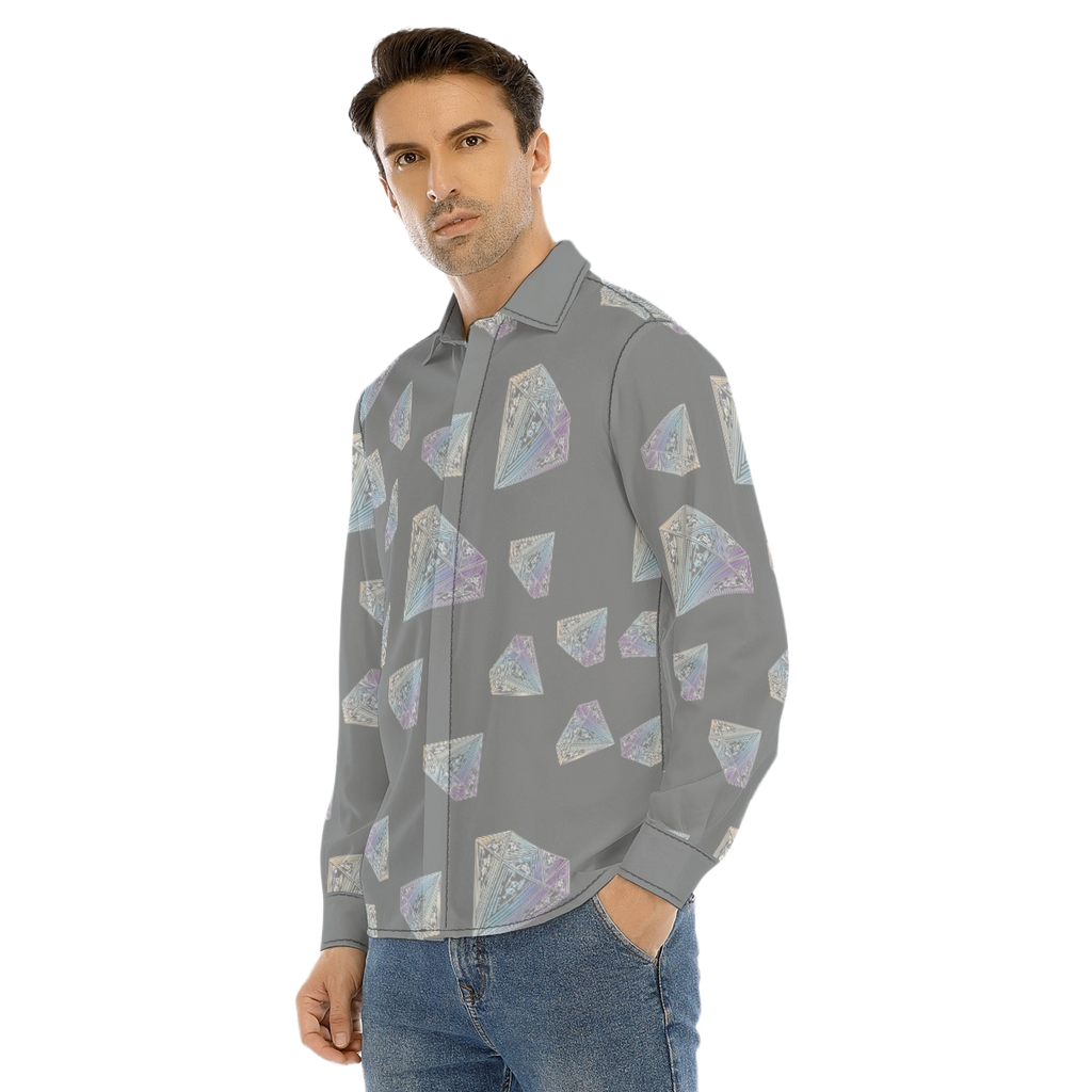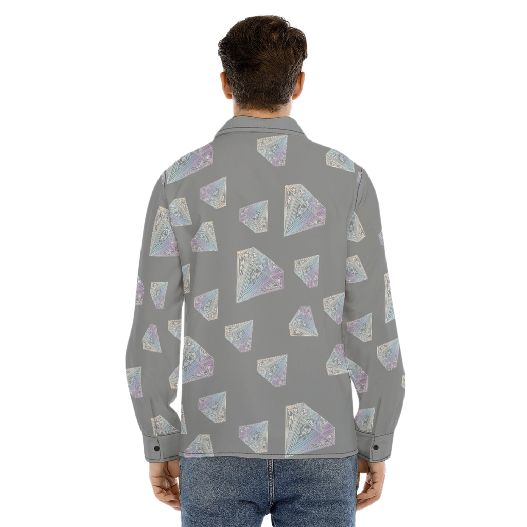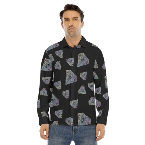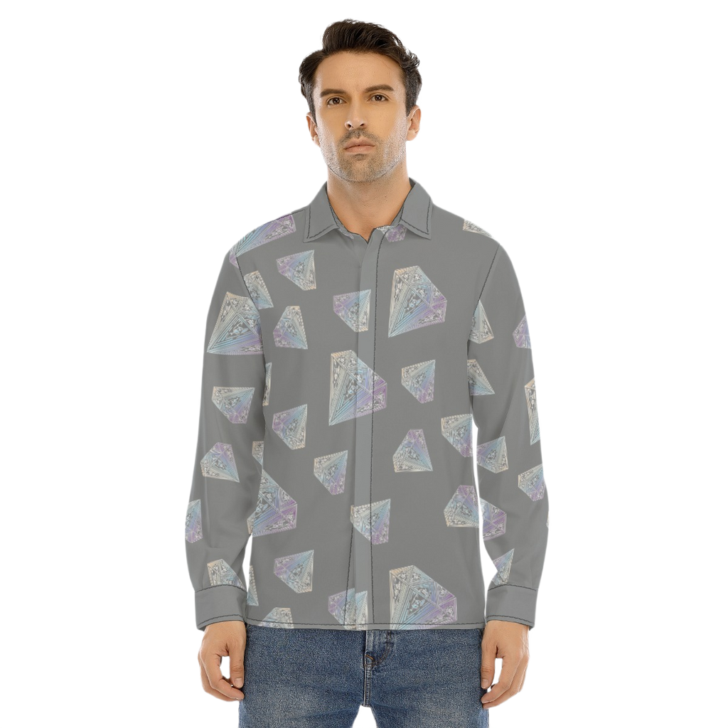Unlock your style with the Diamonds Meow Long Sleeve Shirt in Shadow. With hidden buttons and a unique Diamonds Meow graphic print, this shirt will keep you looking sharp and on trend. Don't be afraid to show your true colors with the subtle shadow accents. (Get it?)