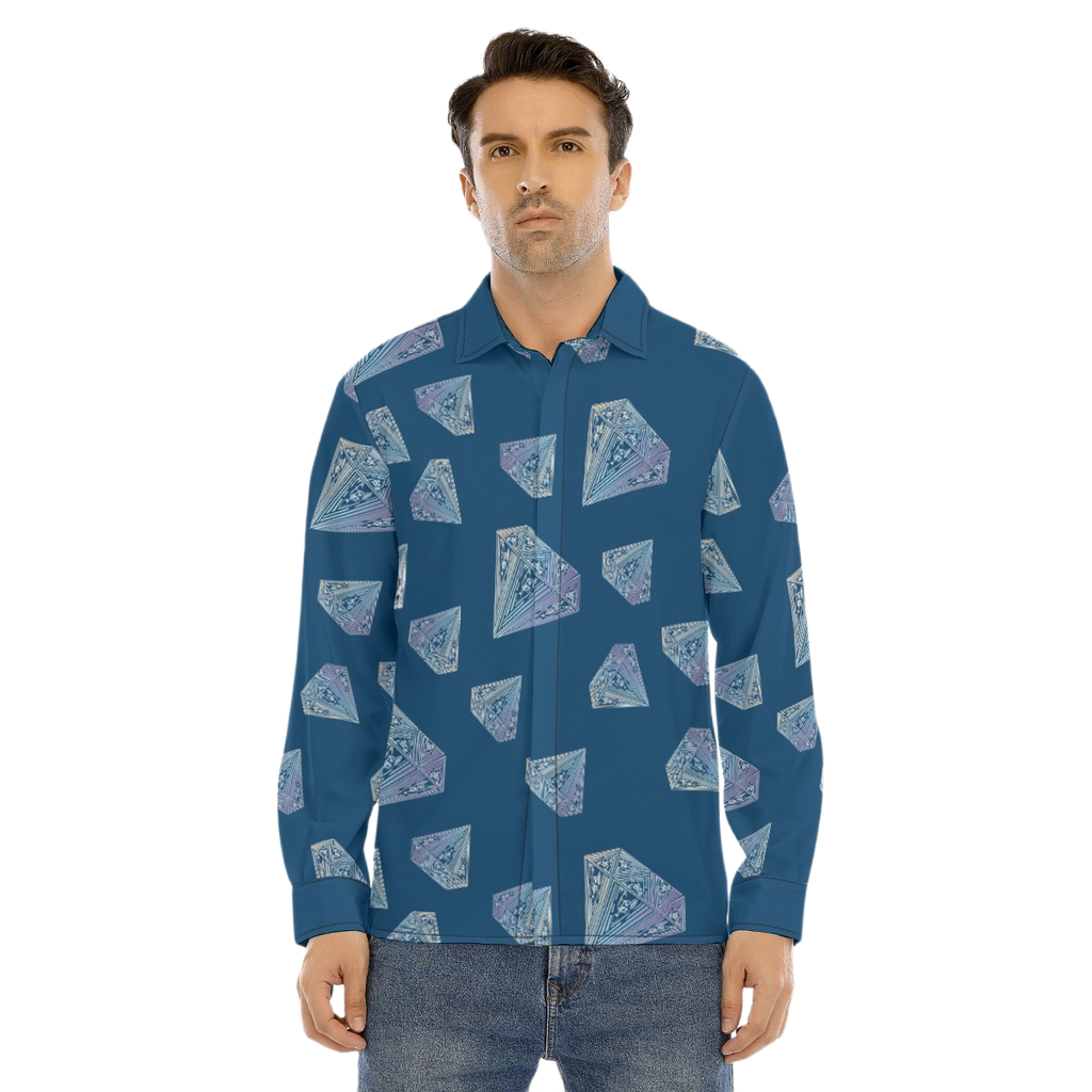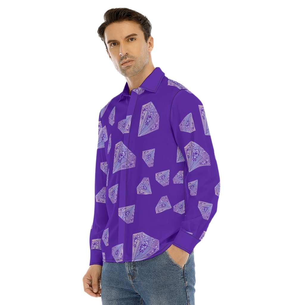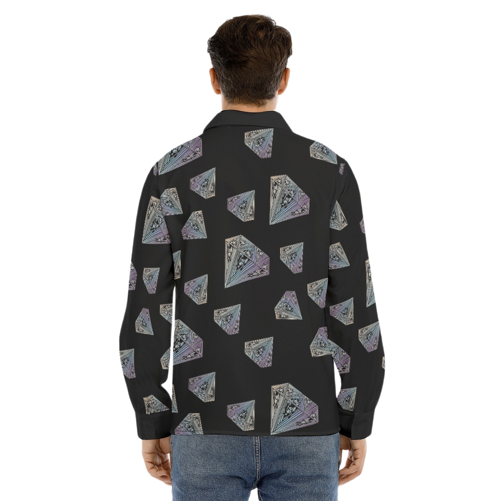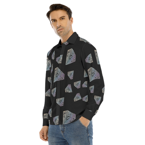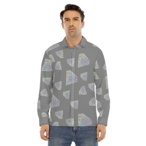 Unlock your style with the Diamonds Meow Long Sleeve Shirt in Shadow. With hidden buttons and a unique Diamonds Meow graphic print, this shirt will keep you looking sharp and on trend. Don't be afraid to show your true colors with the subtle shadow accents. (Get it?)