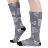 Comfy, stretchy pair of socks featuring the "Diamonds Meow" graphic print in a variety of accent colors